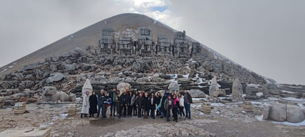 Güneşin doğuşunun ve batışının en güzel izlendiği yer olarak bilinen Adıyaman’daki 2206 metre rakımlı Kommagene Krallığı’na ait 50 metre yüksekliğinde, 150 metre çapındaki Tümülüs ve dev heykellerin bulunduğu, termometrelerin eksiyi gösterdiği soğuk havaya aldırış etmeyen yerli ve yabancı turistlerin akınına uğrayan Nemrut Dağı’na tırmanarak anı ölümsüzleştirdiler. Beyaz örtüsüyle misafirlerini ağırlayan Nemrut Dağı’nda ziyaretçiler fotoğraf çektirmek için zirveye çıktı.