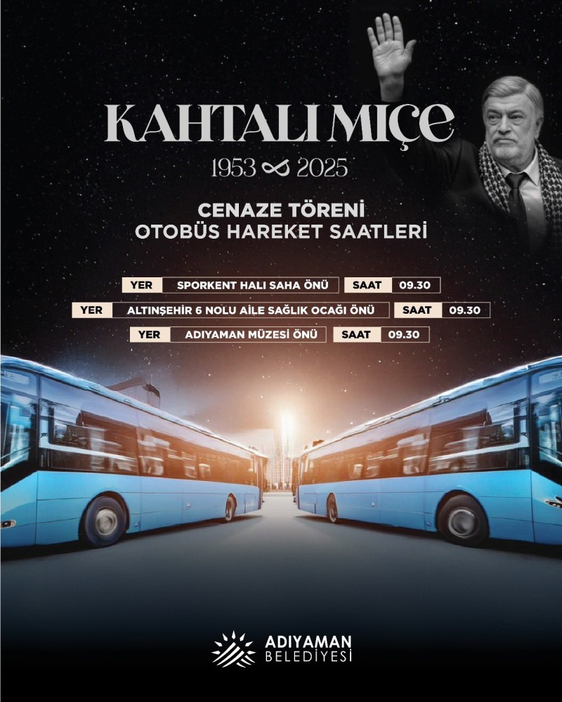 Adıyaman Belediyesi, cenaze törenine katılmak isteyen vatandaşlar için ücretsiz otobüs seferleri düzenleyecek.